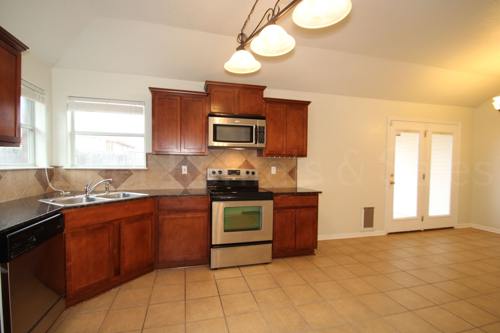 Spacious home in Goodnight Ranch Subdivision in Killeen. This home features a stunning open floorplan. It has 3 bedrooms with 2 full bathrooms, The living room is large with a ceiling fan, crown molding and a fireplace. The kitchen is wide open with custom cabinets, granite countertops, ceramic tile back-splash, a stainless-steel side by side refrigerator, dishwasher, built in microwave, glass top electric stove, plenty of cabinet and counter space. The primary bathroom features a large walk-in closet, whirlpool tub and separate shower. This home also has an inground sprinkler system and window treatments throughout.
